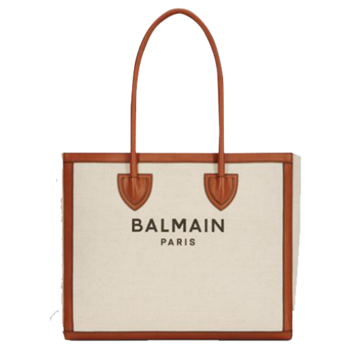 Balmain B-Army Leather-Trimmed Printed Canvas Tote