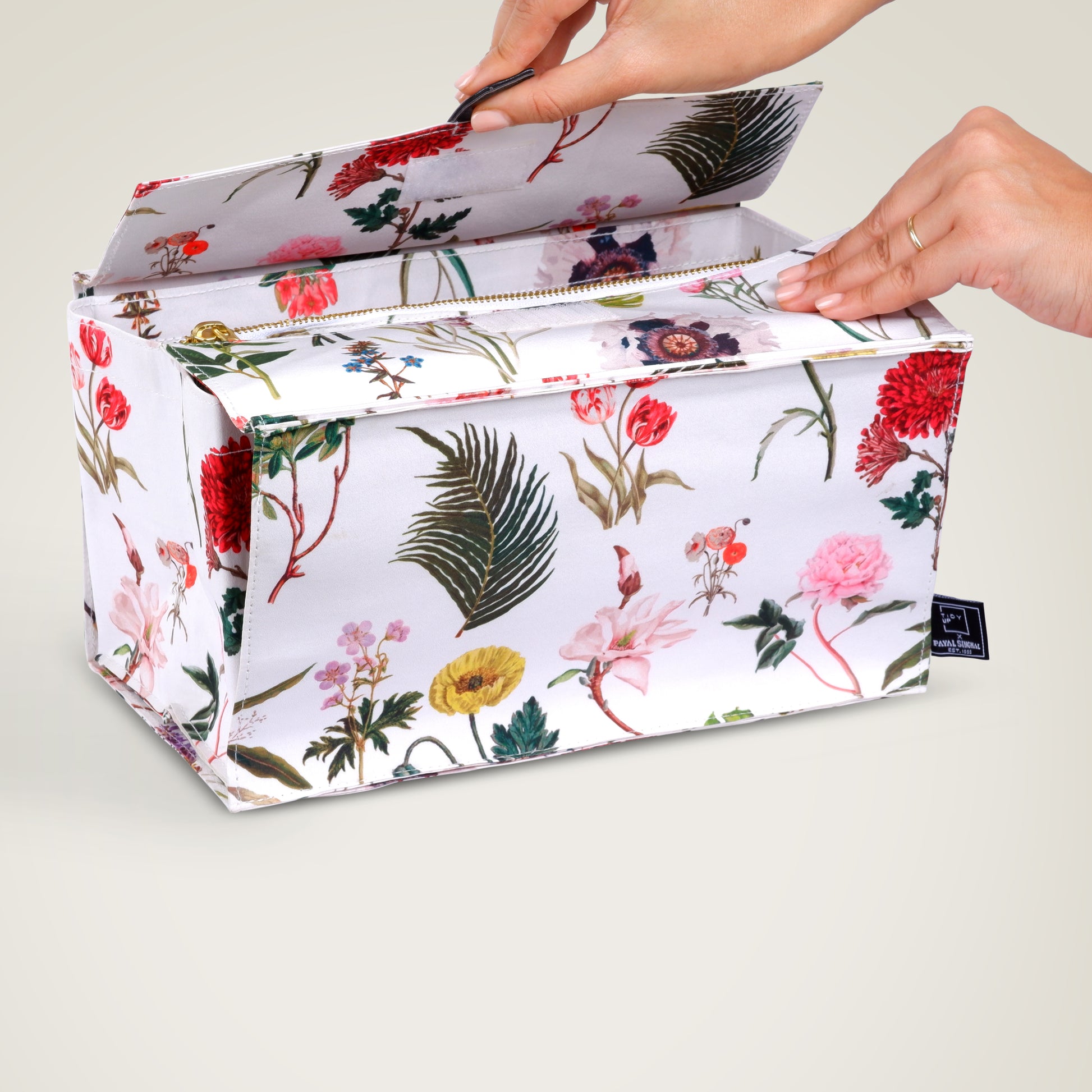 Wraps securely around your organiser before it is placed inside the bag, covering both the base and the top to help keep your essentials protected and in place. It ensures items remain enclosed through movement, travel, and everyday use.