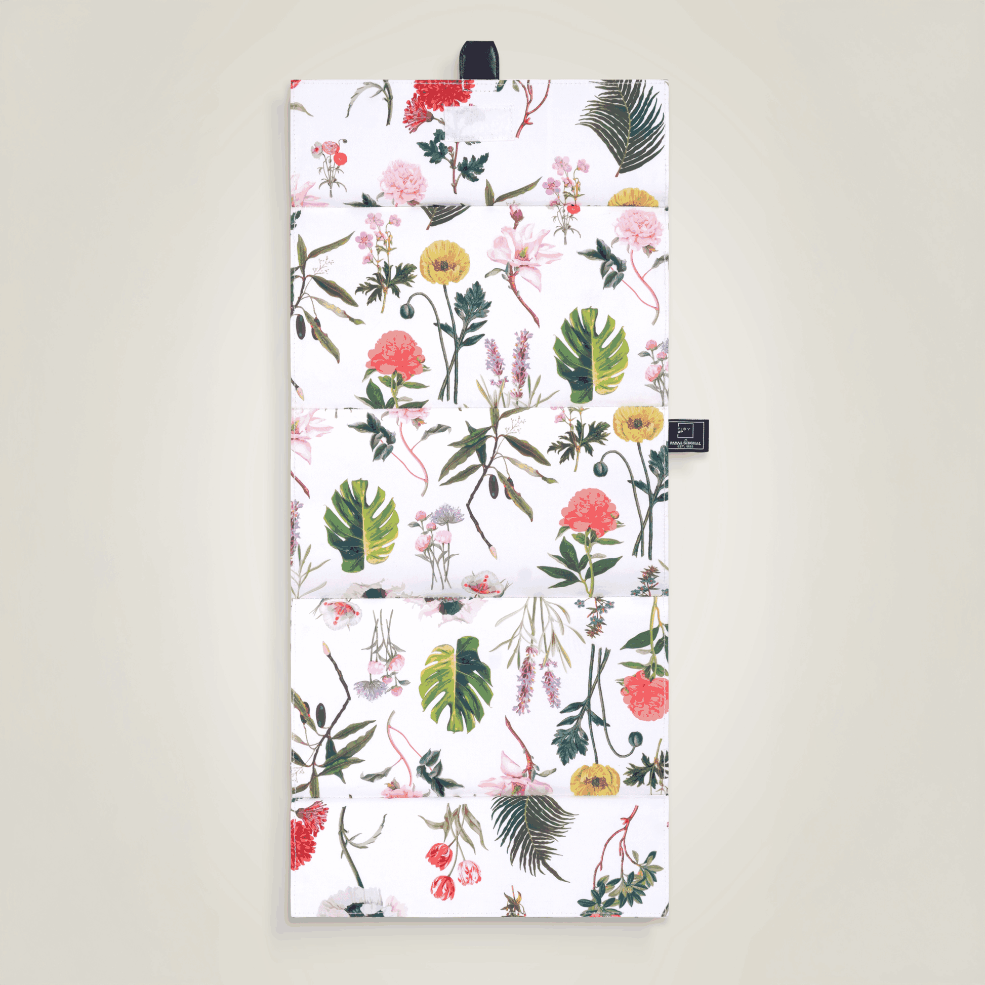 Crafted in digitally printed Rivera crepe, developed in collaboration with Payal Singhal, and reinforced with a structured buckram core for light support and shape. Finished with a vegan leather velcro pull. The print is tested to international standards for colour fastness, ensuring long-lasting vibrancy.
